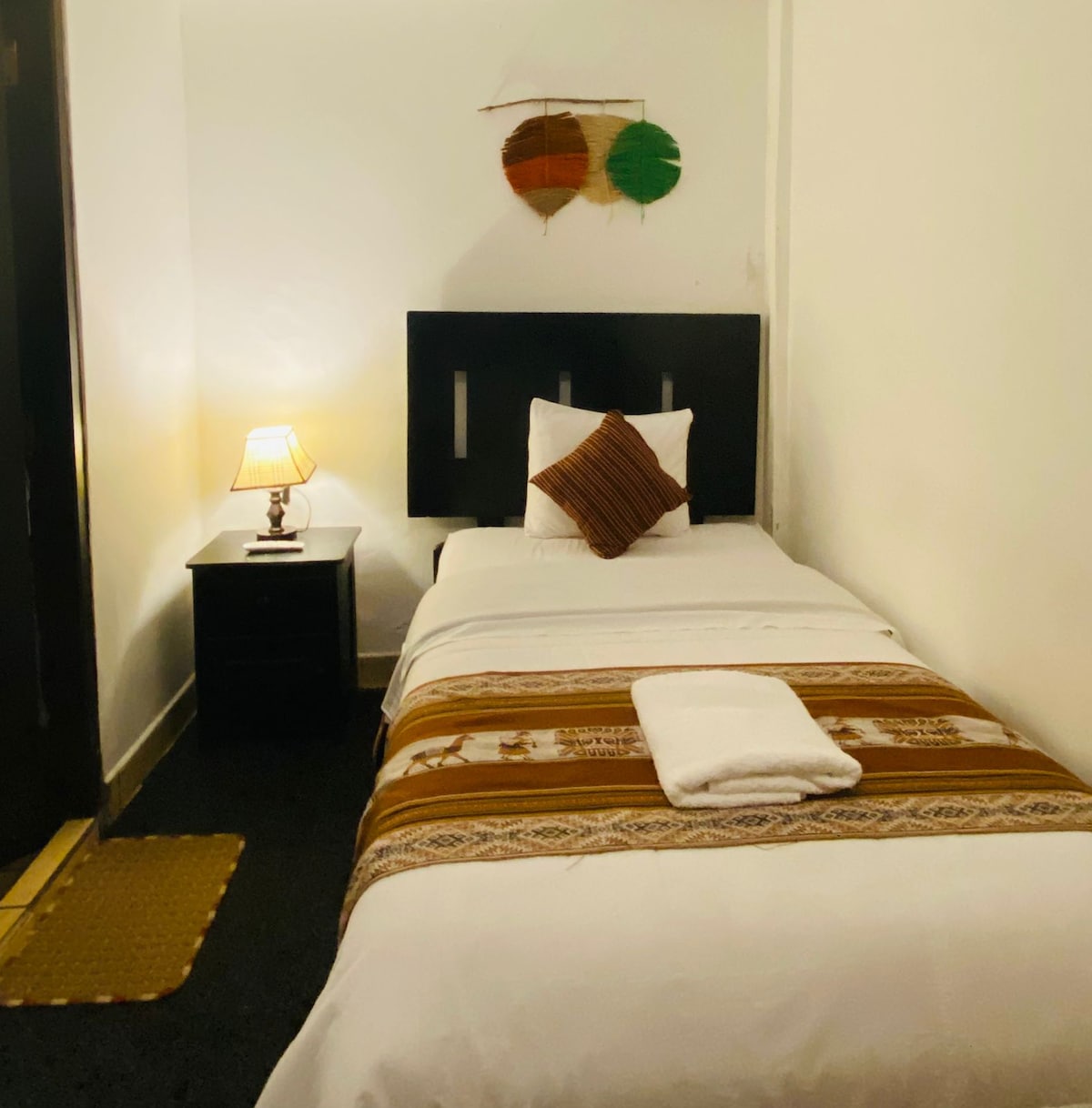 Bonito minidepartamento, decorado con detalles de nuestra cultura andina y lo moderno. Esta ubicado en el tercer piso consta de 1 habitación con cama Queen y 1 sofá cama en la sala, 1 cocineta equipada con todo lo necesario que te permite preparar tus alimentos. Desde la ventana podrás disfrutar la vista a las montañas y el cielo azul del valle sagrado de los inkas.