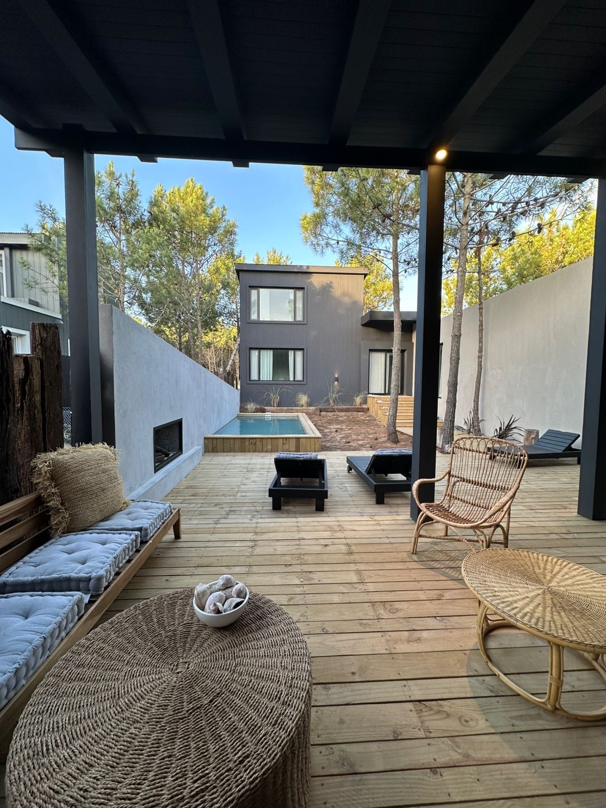 Casa moderna en Costa del Este, a pasos del mar y rodeada de pinos. Ubicada en Costayres, barrio tranquilo y arbolado. Ideal para descansar en pareja, familia o con amigos. 3 habitaciones, 3 baños, cocina equipada, aire en todos los ambientes, wifi fibra óptica y DirecTV. Jardín, parrilla y exclusivo jacuzzi japonés. Acceso privado a la playa. Naturaleza y confort en una vivienda premium.