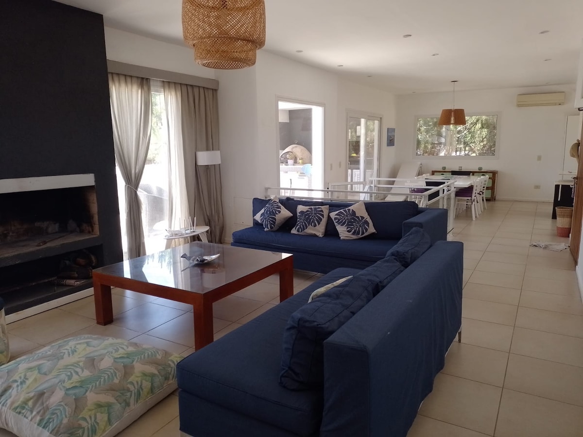 La casa cuenta con 4 habitciones en suite – 1 playrrom con 4 camas y baño completo – dependendia de servicio con baño propio – Total 6 dormitorios – lavadero completo – cocina con lavavajillas y lavasecarropas – living con chimenea – pileta . Fibra opctica wifi / cable . Caldera a gas natural y aberturas de pvc doble vidrio. Se cobra un Fee adicional de 250 usd de limpieza y blanqueria al ingresar a la propiedad