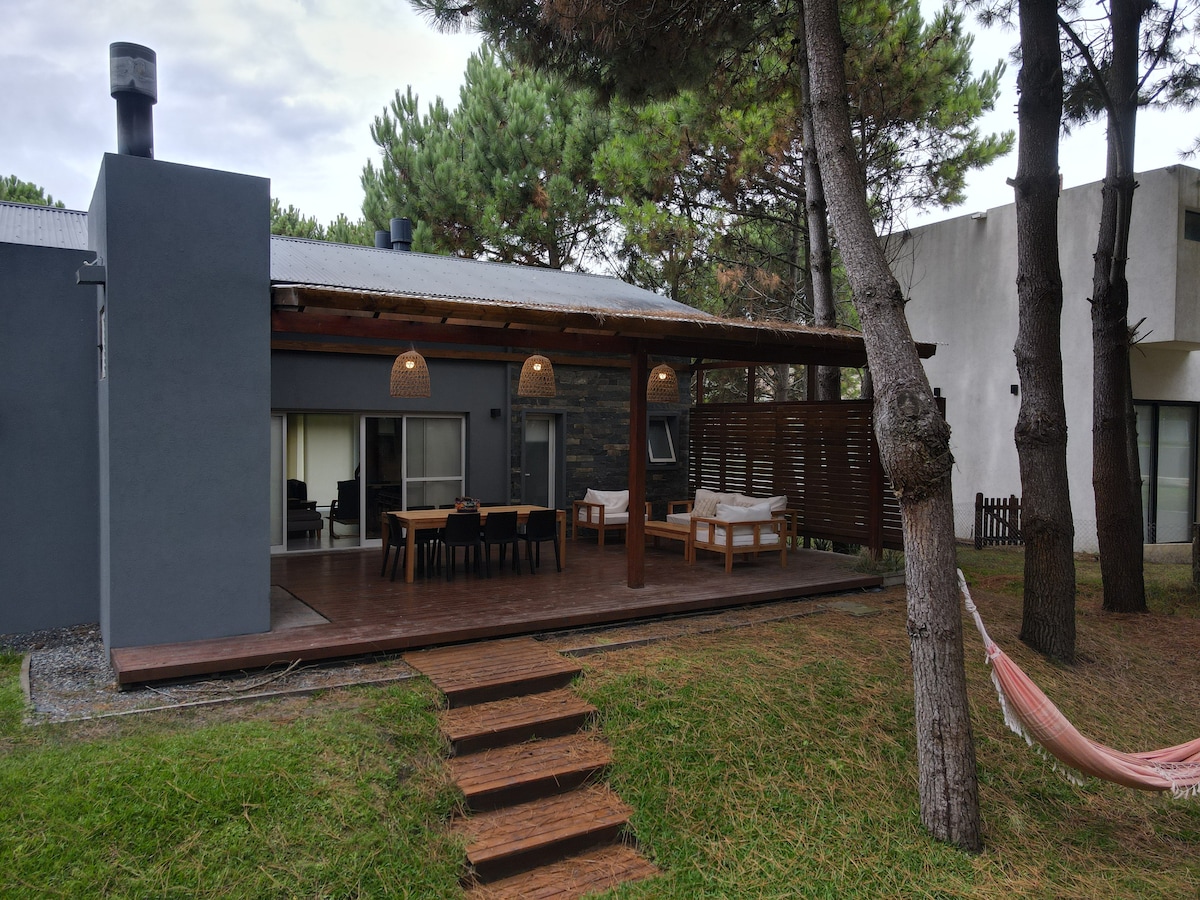 A 2 minutos del mar. 230 mt2. 4 dormis, 2 en suite. Detalles Premium. Planta alta con exclusivo dormitorio en suite, con terrazas y baño( bañera). Abajo 3 cuartos. Importante living-comedor con aire acondicionado. Parrilla. Terrazas. Solarium. Hecha con materiales puros y alta calidad. Entre pinares. Muy Cómoda y aroma a maderas. Ideal para disfrutar en verano y en invierno. Una cocina con isla. Lavadero. Ducha exterior Y todo elegido amorosamente. Matrimonios consultar precio. Sin ropa blanca