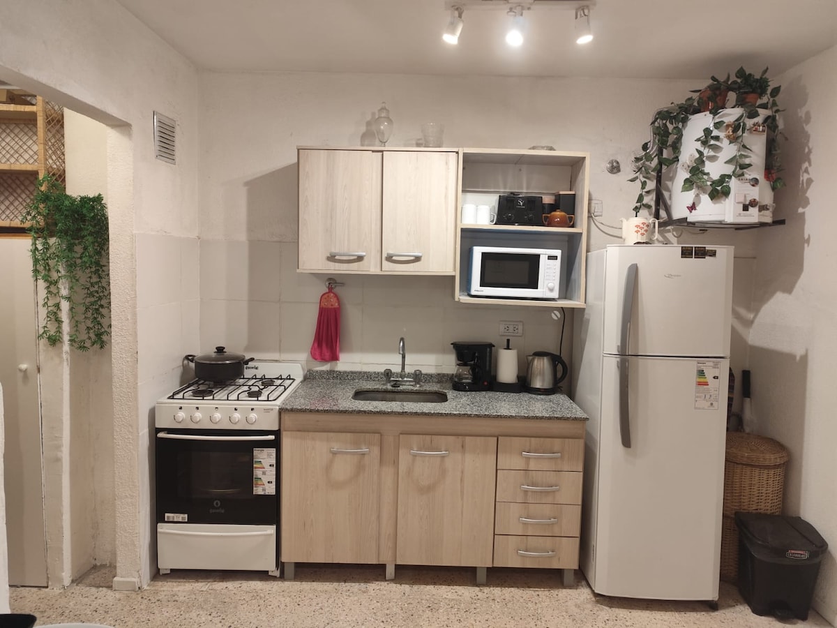 Monoambiente a una cuadra de la playa. Tres cuadras de San Bernardo y cerca de negocios abiertos de manera permanente. Nuevo y confortable. Posee un patio y terraza compartida. Tiene todo lo necesario para pasar una agradable estadía.