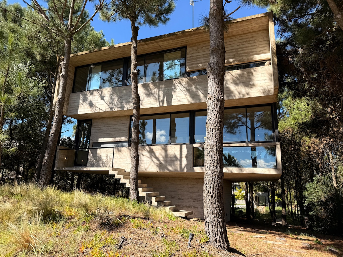 Casa moderna de una planta con pileta, ubicada en el exclusivo barrio Senderos 3 de Costa Esmeralda. Situada en un encantador cul de sac, rodeada de pinos y con un fondo completamente libre, ofrece un entorno natural y silencioso que invita a relajarse desde el primer momento. Con capacidad para alojar hasta 8 personas, es una casa ideal para quienes buscan desconectarse sin renunciar a la comodidad y al encanto de Costa Esmeralda.