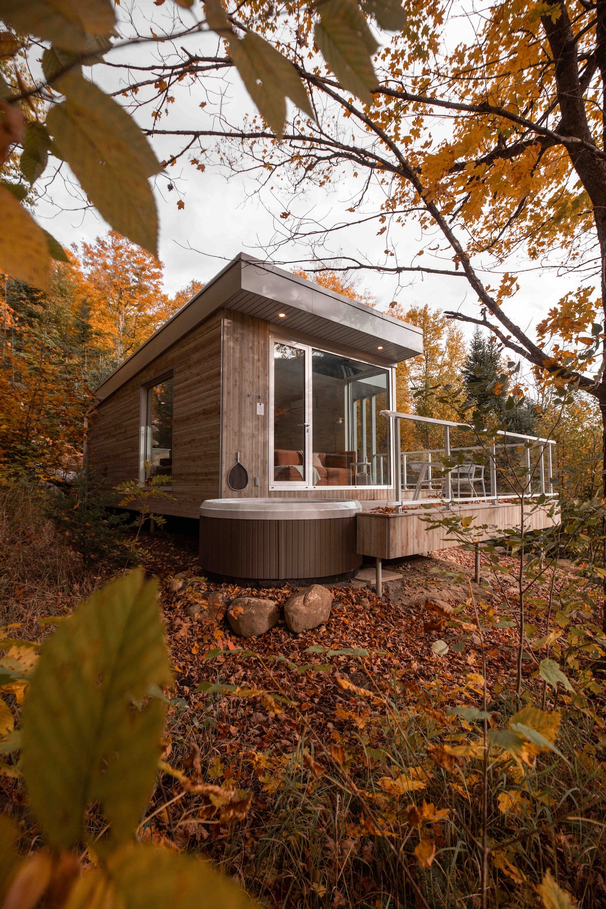 Évadez-vous dans cette micro-maison perchée au sommet d'une montagne et admirez la vue panoramique sur les sommets environnants à travers ses murs de verre. Détendez-vous dans le spa, accessible en toute saison, tout en profitant des plus beaux couchers de soleil. Découvrez ce trésor caché au cœur de la forêt boréale canadienne, alliant confort et fonctionnalité en toute saison. Une expérience intime et inoubliable, près de la ville mythique de Québec, classée au patrimoine mondial de l’UNESCO.