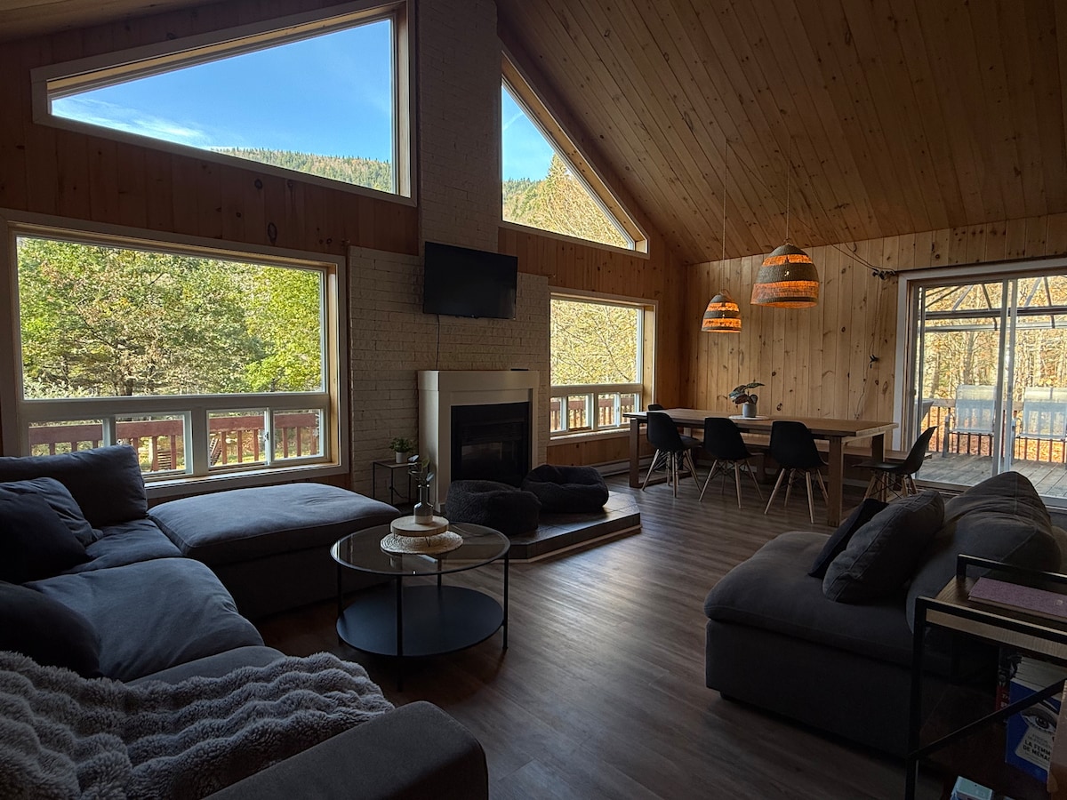 Envie d’une escapade en pleine nature? Ce chalet à flanc de montagne de style scandinave saura vous charmer. Avec son terrain de plus de 1 million pieds carrés, vous pourrez profiter d’un lac, d’une rivière, de sentiers pédestres, tapis de yoga et bien plus! Vous séjournerez dans un endroit où la détente et la nature sont au rendez-vous. Bien équipé, le chalet n’attend que vous! Conçu pour 2 personnes mais pouvant accueillir jusqu’à 3 personnes avec le canapé-lit (simple).