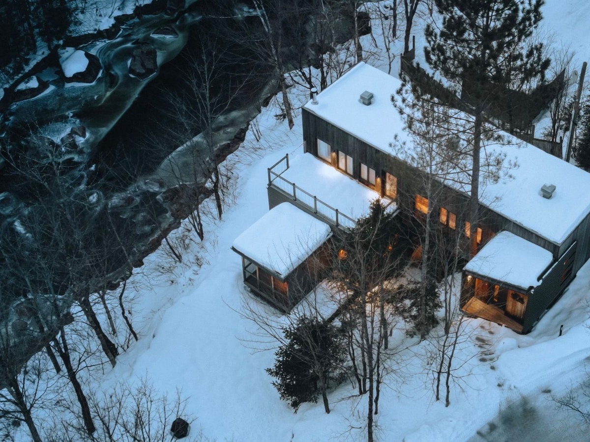 Small Scandinavian chalet for two people ideally located to enjoy the attractions of Charlevoix. It has a thermal circuit (hot tub, sauna, hammam) Very intimate and in the middle of the woods, the view overlooks the majestic river and the mountains in the distance. All the modern equipment is there and the comfort is absolute A/C and outdoor fireplace. The open concept design was designed for an immersive experience in nature: large windows, panoramic shower. Access via a private road at 500 m.