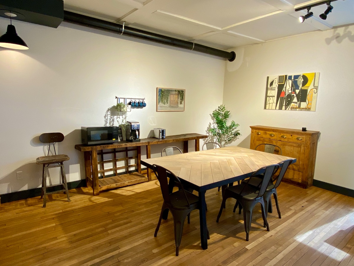 Loft entièrement rénové et équipé à neuf (lit Queen, matelas, literie, vaisselle) situé au cœur du village de Saint-Jean-Port-Joli. Idéal pour couple ou personne seule. Tout est accessible à quelques minutes de marche, y compris l'accès au fleuve. Une escapade en solo ou en couple, un moment d'arrêt dans un village ou l'art, la culture, le terroir et les paysages sont au rendez-vous. Installation récente d’une nouvelle connexion internet à point pour télétravail !