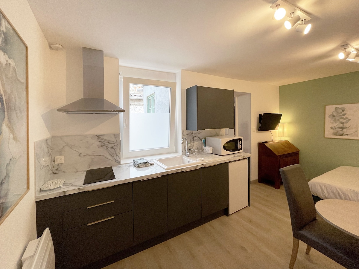 Situé à 200 mètres de la Grand-Place et à proximité immédiate du musée Sandelin, le Coquet est un charmant appartement meublé 3 étoiles, labellisé par l'Agence de développement du Pas-de-Calais. Récemment rénové, il dispose d'une pièce principale lumineuse avec cuisine équipée, d'une salle de bain et d'une chambre confortable. Son emplacement central et ses équipements modernes en font une location idéale.