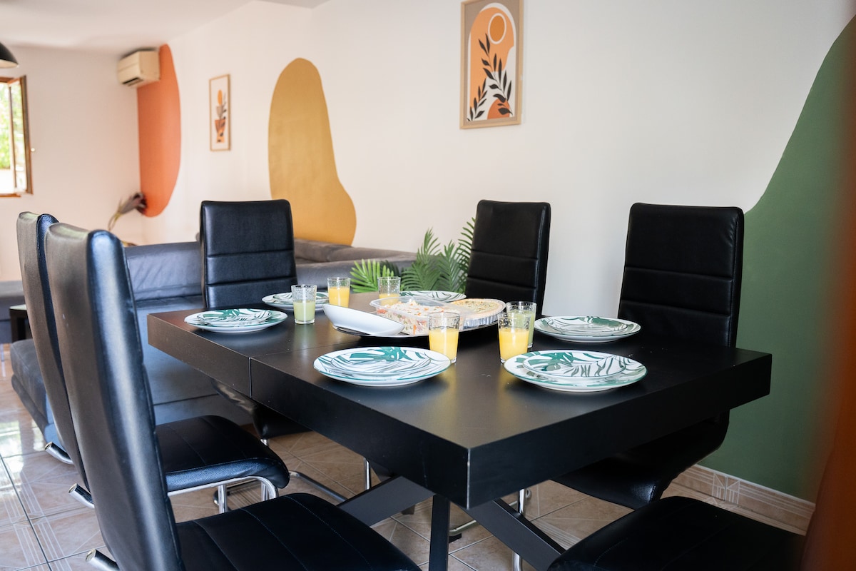 Bienvenue dans notre charmant logement indépendant à Arnouville Idéalement situé, en voiture, il se trouve à : • 15 min de l’aéroport Charles de Gaulle ✈️ • 25 min de Paris 🗼 • 20 min du parc Astérix 🎡 • 20 min du Stade de France 🏟️ Ce logement comprend : • 1 chambre avec lit double 140x190 • 1 salon avec canapé convertible en lit double, télévision et cuisine ouverte équipée • 1 salle de bain et WC ➕Entrée autonome ➕WIFI ➕Caméra de surveillance à l’extérieur ⚠️ FÊTE NON AUTORISÉE