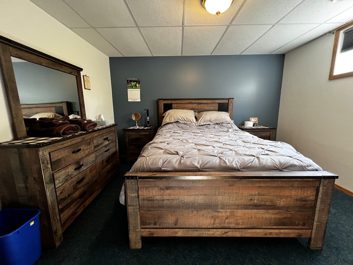 This is a basement bedroom located in our Homestead Way B&B in La Crete, Alberta. It’s quiet, comfortable, spacious, cozy, and has all of the amenities!