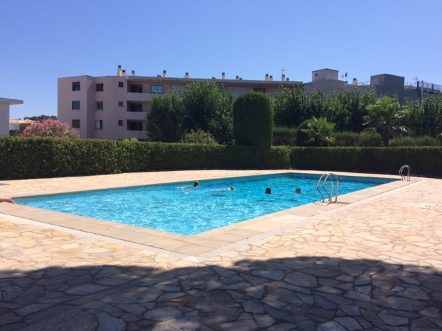 Très bel appartement à 400m de la place et situé dans une résidence neuve avec piscine. La location est idéale, avec un petit supermarché à 100 mètres, et la plage et les bars et restaurants à 400 mètres, vous n'aurez pas besoin de voiture! L'appartement est composé d'une chambre, d'une salle de bain, d'un séjour avec cuisine ouverte (machine dolce gusto) et d'un jardin avec terrasse pour diner ou déjeuner.