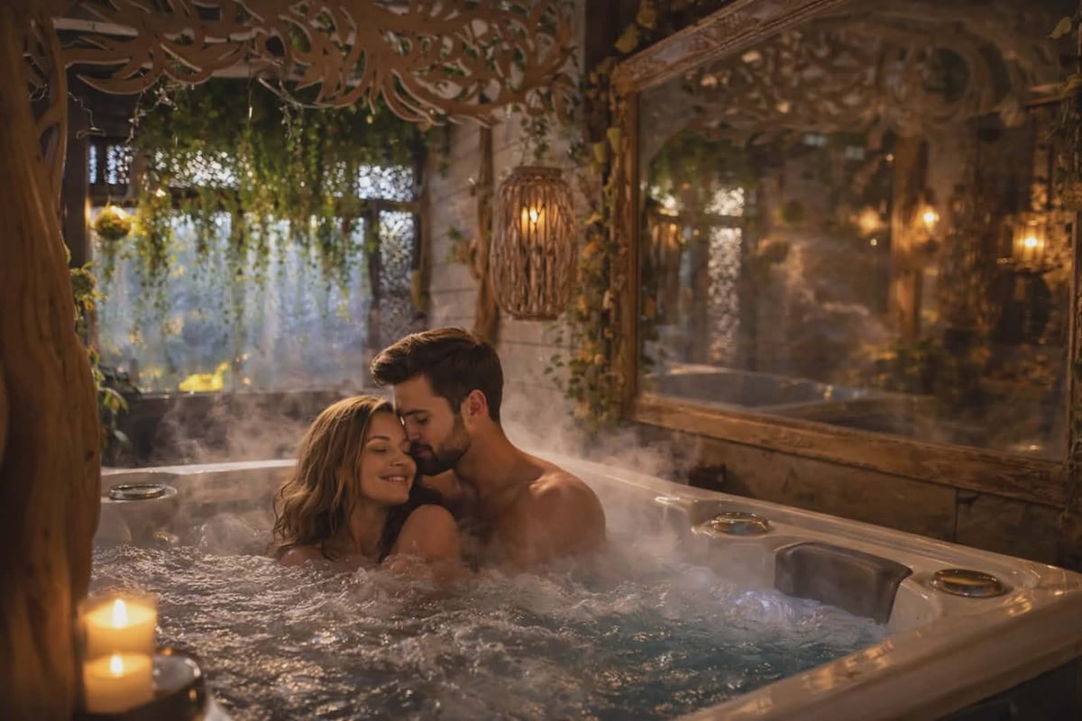 带室内按摩浴缸的浪漫迷人的住宿体验