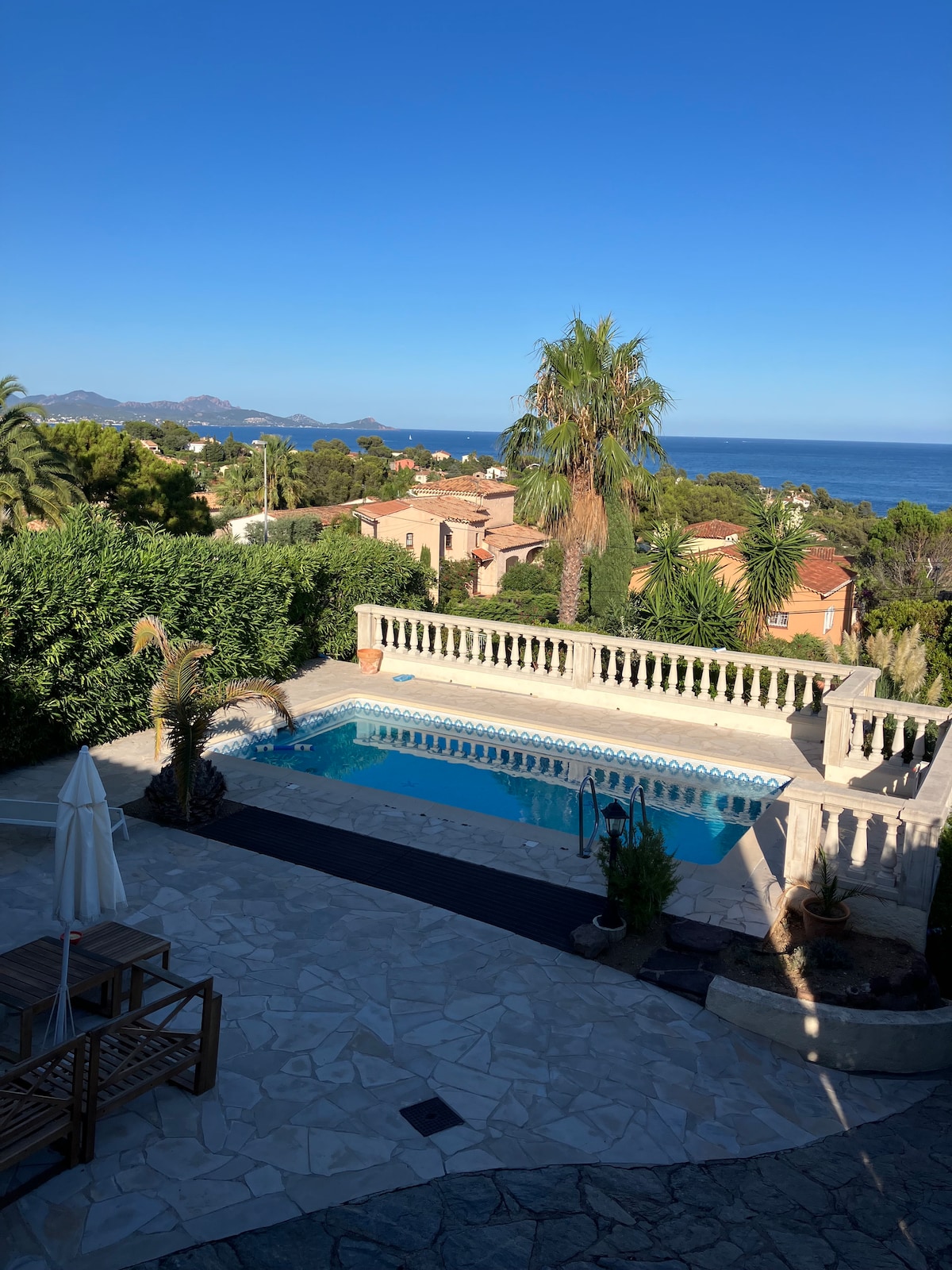 Superbe villa classée 3 étoiles à Saint-Raphaël Plage à 1.2km, centre Boulouris à 1km, St-Raphaël à 5km Piscine privée 8,5mx4.2m, chauffée du 15/04 au 31/10. Couverte non chauffée l'hiver Espace détente privé avec jacuzzi 3 places et sauna traditionnel Barbecue gaz grandhall Terrain de pétanque éclairé avec boules,table de ping pong Parking privé 3 autos équipé d'une recharge électrique Wallbox gratuite Balançoires et toboggan Vaste terrain 2.200m2 entièrement clôturé Portail automatique