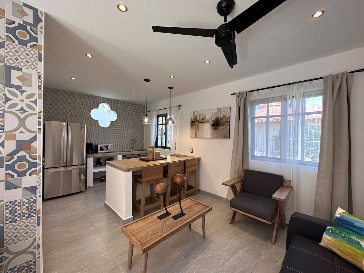 Un departamento fresco y moderno para unas vacaciones inolvidables con la familia o para trabajar en smart working. Decorado con detalles preciosos que te harán sentir como en tu propia casa. Equipado y con servicios de alta calidad: internet 200mbps, lavadora/secadora, smart tv, agua caliente y aire acondicionado. Se ubica a 2 minutos caminando de la playa Santa Cruz y cerca de restaurantes, tiendas y mercados. Además cuenta con un rooftop común desde donde se alcanza a ver el océano.