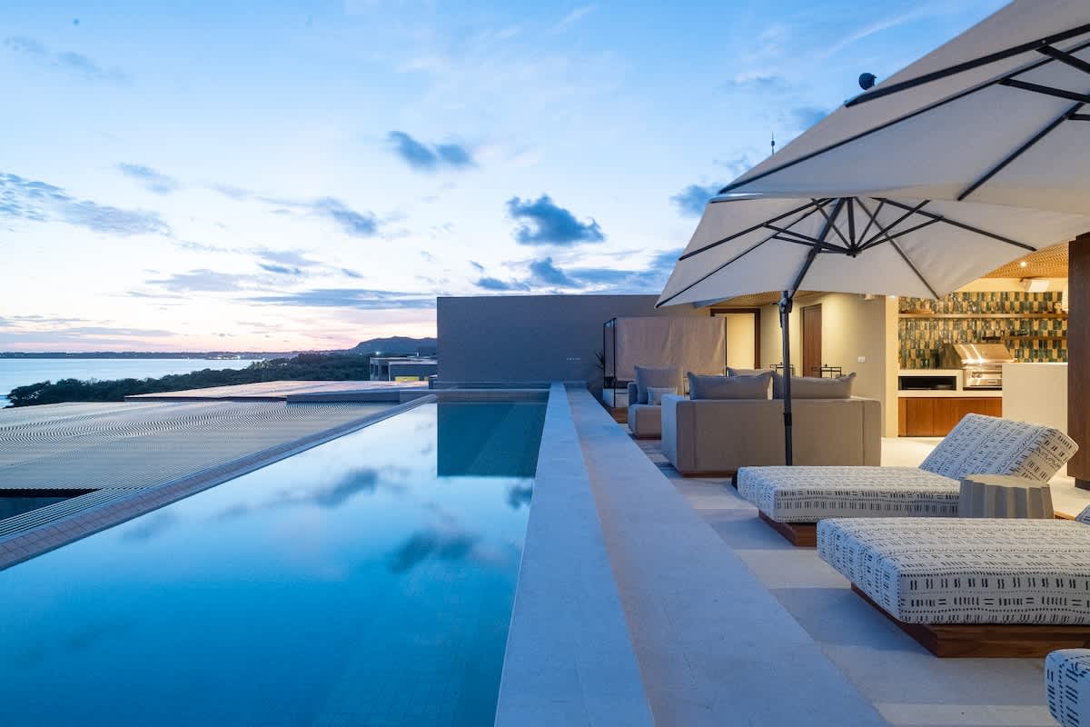 Watch from a lounger as ships pass through the marina next door at this contemporary villa located minutes from the bustling Puerto Vallarta. Splash around in the infinity pool on warm afternoons, while the kids play on the lawn. Or, escape to the courtyard to catch up on some reading beneath the shady trees. Later, check out the vibrant nightlife and beachfront bars around Playa Los Muertos.