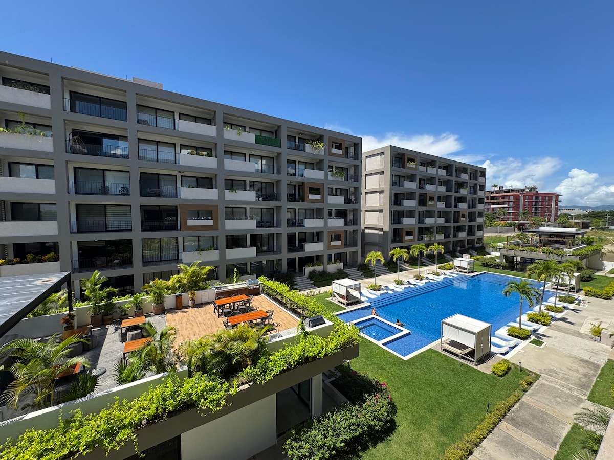 Este lujoso departamento de 2 recámaras y 2 baños ofrece una cocina equipada, sala y una terraza con vista a la playa. Las amenidades no terminan en tu puerta. Este exclusivo complejo te ofrece: Dos albercas climatizadas, gimnasio, cuarto de juegos, sala de trabajo y la seguridad 24/7 te da total tranquilidad. Cerca, explora la vibrante Marina Riviera Nayarit, el Mercado Dominguero, playas como La Manzanilla, y tours a las Islas Marietas. Vive la esencia de la Riviera Nayarit.