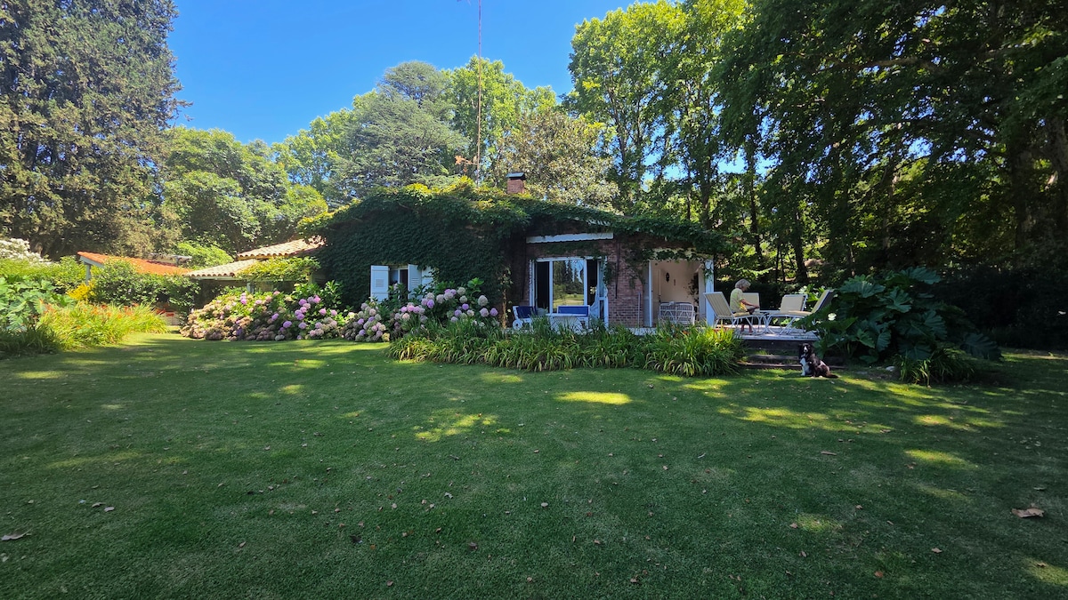 Yellow House, casita boutique 120m2 ⭐️ Excepcional casa y decoración, con detalles originales. Pisos parquet, techo de tejuelas e importante vigas, chimenea de época hacen del amplio living un lugar único. Máster suite con gran ventanal al jardín, cama king y baño completo. 2ndo cuarto con 3 camas twin y baño de época. Escritorio c/amplia mesada para trabajar y sofá que sirve como 5ta cama. Simpático jardín y magnolia purpura acompañan el deck y parrilla, de uso exclusivo, así como el garage.