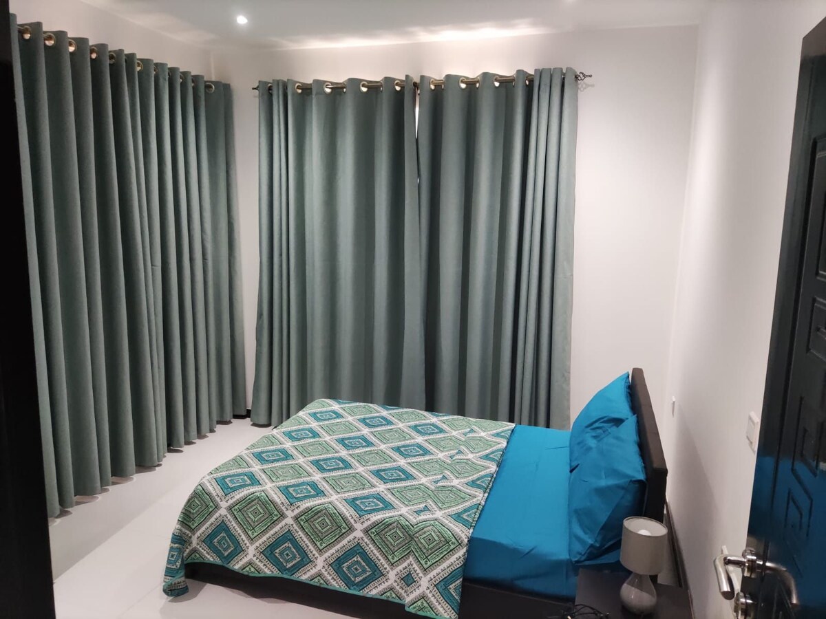 This place is located in the heart cantonment and is a very quiet and cosy 2 bedroom apartment. Security is top-notch and is just a few minutes walking to restaurants, night clubs, shopping malls and bars. In addition, is 7 minutes drive to the airport.