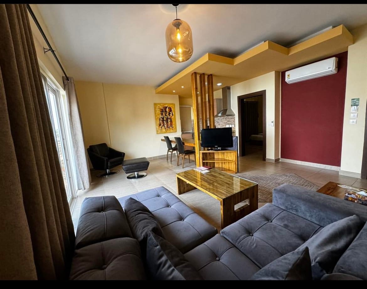 Stay in the heart of Accra, just 10–15 minutes from the Airport. This spacious apartment at Adinkra Heights on the Switchback Road, Cantonments is filled with natural light and designed for comfort; your perfect home away from home. All three rooms, living area, and kitchen are fully air-conditioned. The kitchen is stocked with modern appliances, cookware, cutlery etc. Whether you’re visiting for business or leisure, you’ll love the central location, tasteful décor, and relaxing atmosphere.