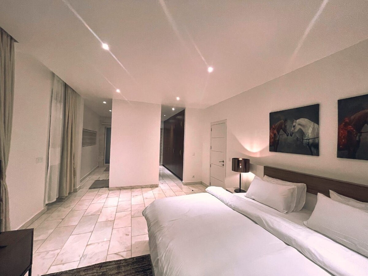 Experience unparalleled luxury in this ultra-modern 4-bedroom villa, just 5 minutes from stunning Labadi Beach, and 15 mins away from Kotoka International Airport. Step into a world of sleek design, featuring spacious interiors. Located in a prime area, you’re moments from most of Accra’s vibrant scenes, with Accra Mall 18 minutes away. Whether seeking a serene beachside retreat or an exciting urban adventure, this villa offers the best of both worlds. Book now for a truly unforgettable stay!