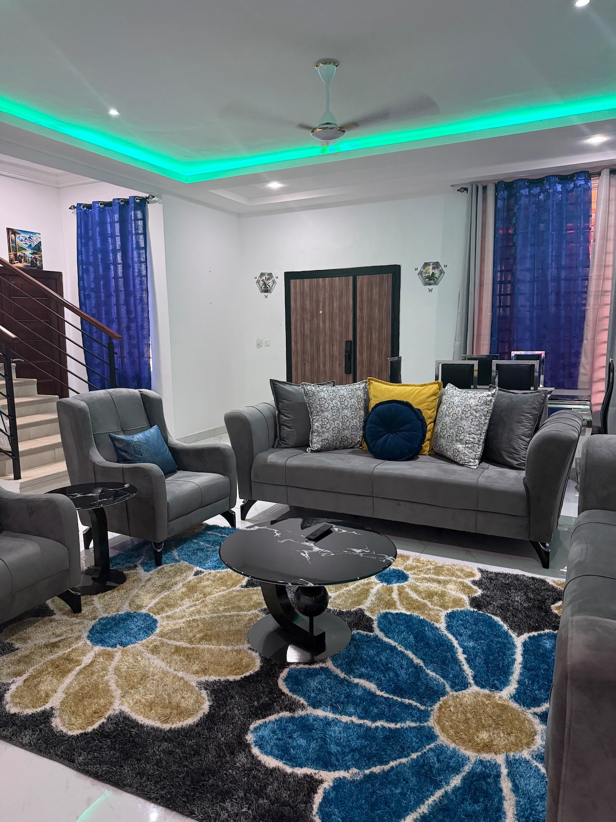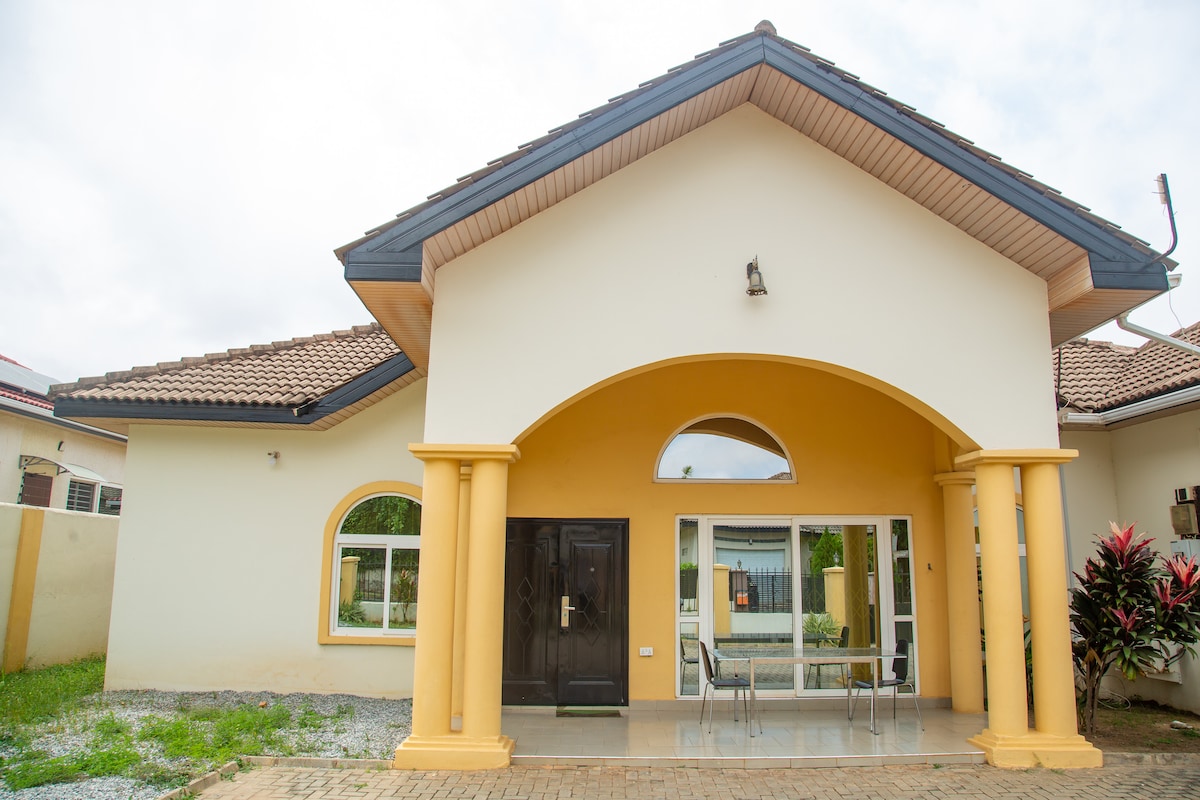 Enjoy an enriching experience in this luxurious home @East Airport, perfect for your family & groups. House is fully fitted w/ACs,functional kitchen, super comfy beds,cozy couch,security,unlimited internet,DSTV,entertainment systems,& a 66kva backup Generator for your endless comfort. Location is 10min drive from Airport & within 15min radius of all the prime entertainin & business locations in the city including Labadi Beach,East Legon,Accra Mall,popular restaurant&nightlife. Be Warmly Welcome
