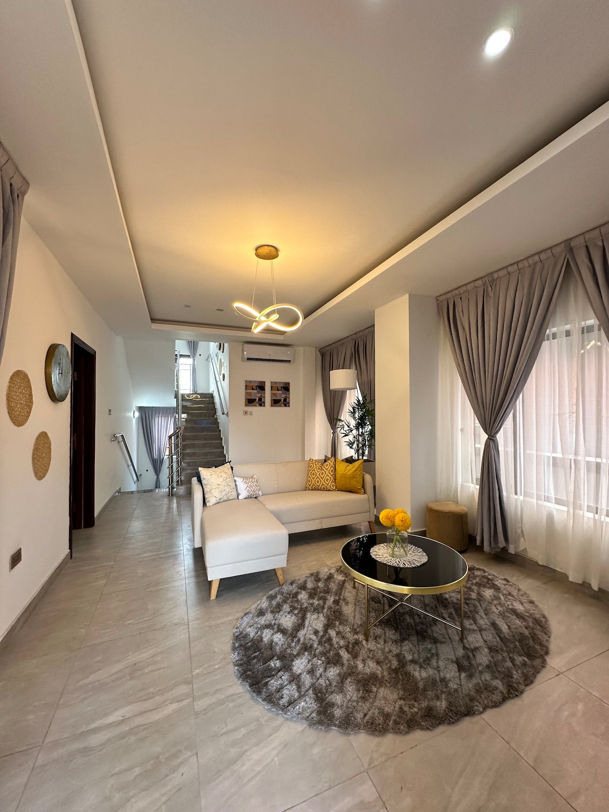 Experience refined comfort in this luxury & cozy 3-bedroom townhome perfectly located in the heart of the city. Within 10 minutes of the airport, embassies, the beach, top malls, restaurants, and nightlife. Enjoy elegant interiors, a fully equipped kitchen, and serene bedrooms — all with 24-hour onsite security, free parking, and high-speed Wi-Fi. Your perfect blend of luxury, safety, and convenience.