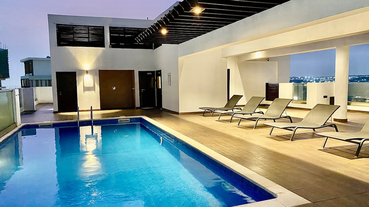 Our apartment offers exceptional value and is designed for utmost comfort. It features a rooftop terrace with airport and city views, a swimming pool, and 24-hour power. Located in the heart of Accra, East Airport, it's just 10 minutes from Cantonments, Osu, Kotoka International Airport, Accra Mall, and Palace Mall, with many restaurants nearby. This is the perfect home away from home. We look forward to providing you with an amazing experience!