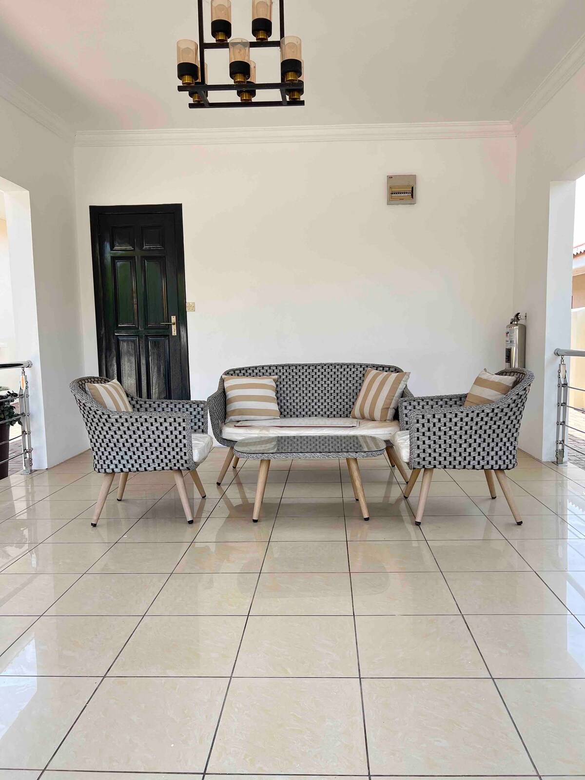 Naabou is not just an ordinary apartment. It is an airconditioned private space with a homely touch .It is fully furnished with a cosy King-size bed with a 55 inch smart smart Tv, dining area for two,well furnished kitchen,neat bathroom with a sizable gated compound with pergola with cane furniture for your relaxation, comfort and privacy. It is ideal place for couples and business persons and a generator to take care of power interruption and also washing machine and accessories for laundry