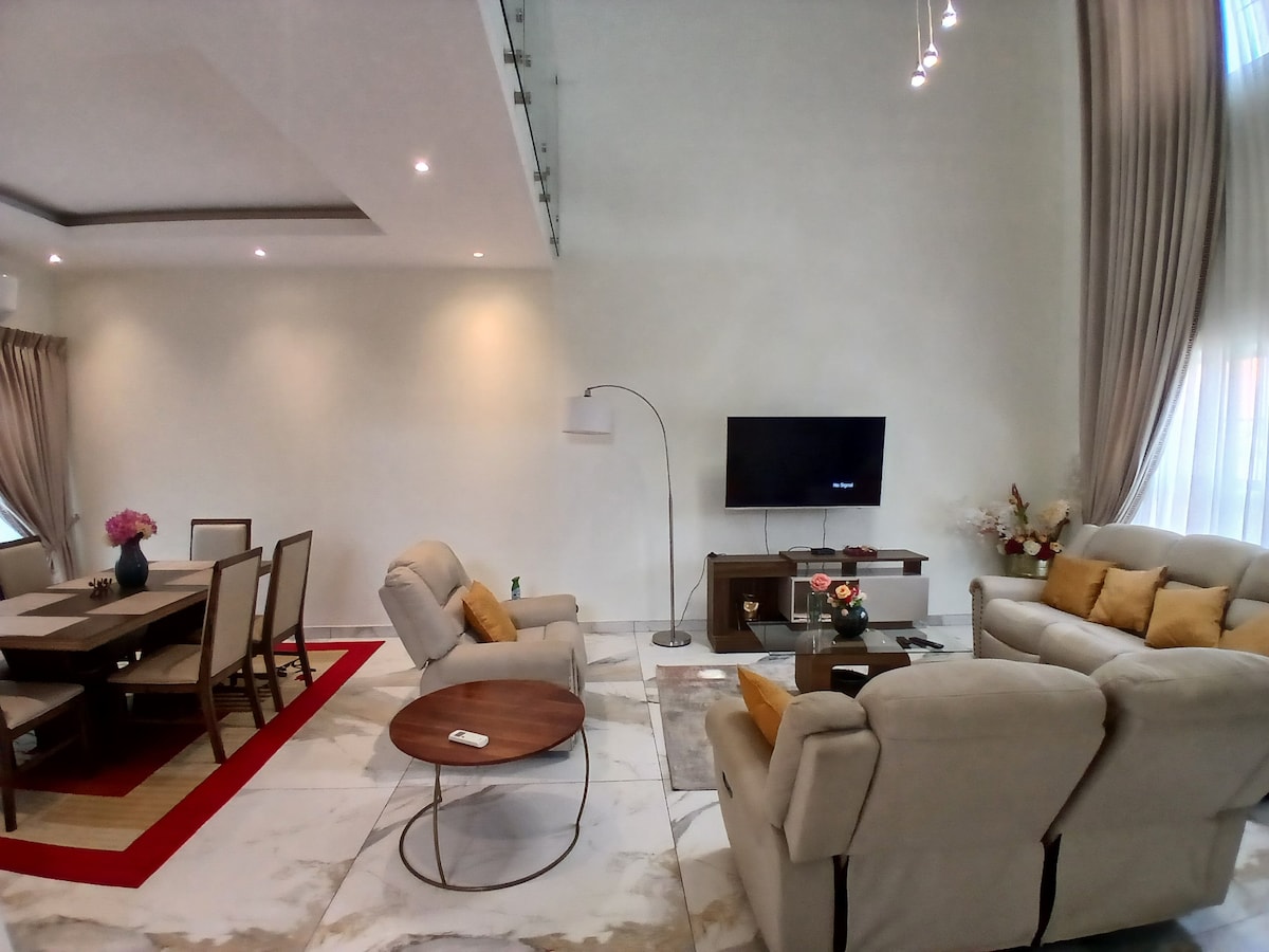 Forget your worries in this spacious and serene space. A four bedroom home, in a peaceful estate. Amenities such as a swimming pool and gym are available for use also. This estate is a 5-10 minute drive from the Labadi Beach Hotel and a 15-18 minute drive from Osu Oxford Street. This four bedroom home comes with, wifi, electricity, water, a tv, kitchen appliances such as; a rice cooker, kettle, blender etc, a big dining table, two spacious living areas and 3.5 bathrooms.