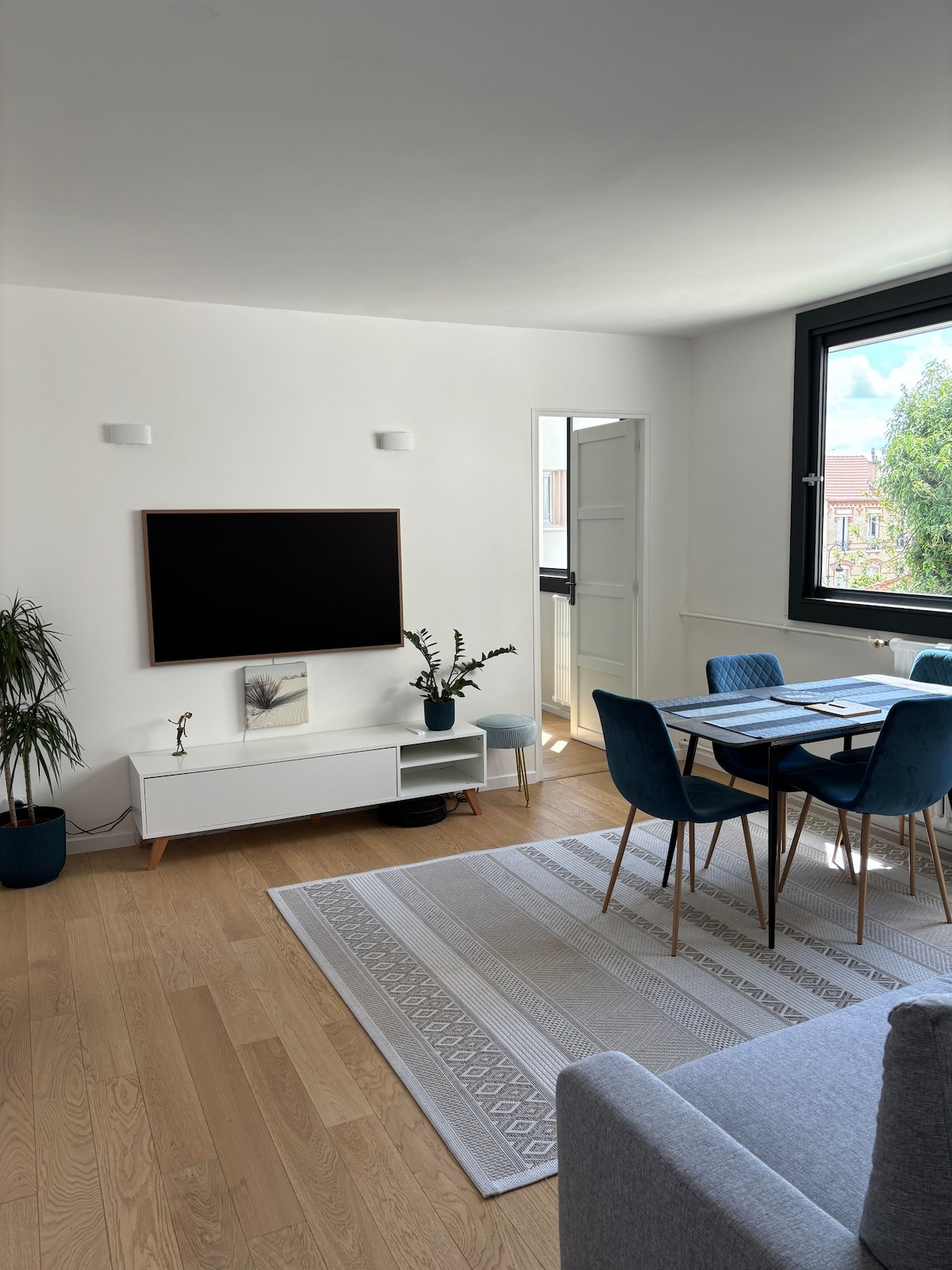 Plongez dans l'ambiance chaleureuse de notre appartement, idéal pour 6 personnes. Profitez d'une première chambre avec deux lits simples, d'une seconde avec un lit King size et d'un salon avec canapé convertible en lit double. La décoration mêle éléments industriels et naturels pour un espace tendance et accueillant. La cuisine ouverte, moderne et entièrement équipée, est parfaite pour vos repas et pour des instants conviviaux. À seulement 250 m de la gare, Paris est à 15 min, La Défense à 5 min