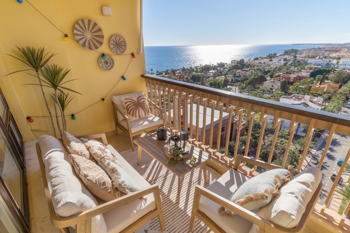 Estudio muy luminoso con impresionantes vistas, a 250 metros de la playa. Con vistas al mar y a la montaña. Balcón espectacular para el verano, se ve el amanecer y por las tardes da la sombra. Ideal para comer y cenar. Cuenta con todas las comodidades, cocina completa (con microondas, tostadora, placa de inducción, etc.), aire acondicionado con bomba de calor, lavadora, nevera, tv, mesa y sillas tanto dentro del estudio como en la terraza.