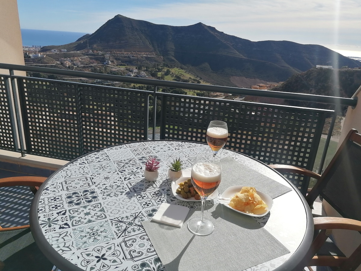 This accommodation is a place of tranquillity: relax with the whole family! Ideal for holidays or teleworking in the best conditions of relaxation and tranquillity, taking inspiration from its wonderful terrace with unbeatable views of the golf course, the mountains and the sea. Breathe in the nearby nature of the La Envía mountains. Close to the beach. Enjoy the magnificent community facilities: outdoor swimming pools, indoor swimming pool (seasonal), gym, children's games room, billiards.