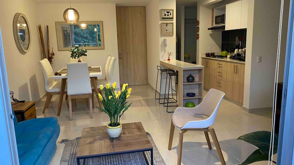 Beautiful studio apartment located in one of the best neighborhoods. Enjoy during your stay a cozy space and family atmosphere. Find nearby shopping centers, restaurants, green areas and access to public transport. The complex has a swimming pool, Jacuzzi, BBQ so you can share with your family and friends and enjoy Ibague's weather and its sunny but very windy days. It has private covered parking (last basement, Park # 23).