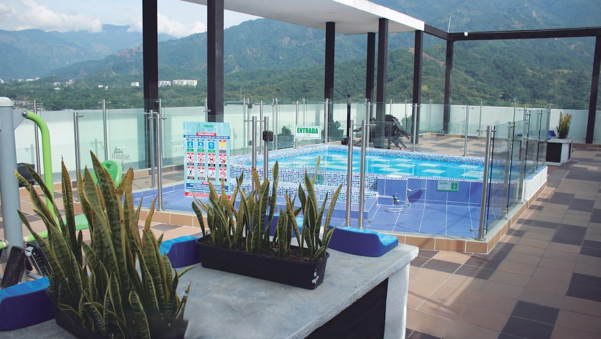 El apartamento cuenta con aire acondicionado y esta ubicado en el piso 18 del edificio más exclusivo de la ciudad. Tiene capacidad para 6 personas. Cuenta con piscina estilo infinity en el piso 20; Turco, sauna, juego para niños, parqueadero, internet, recepción 24 horas, terraza, balde para asados y agua caliente. Excelente vista de la ciudad y montañas. Está cerca al centro, centros comerciales, D1, éxito, Ara, justo y bueno, Etc.