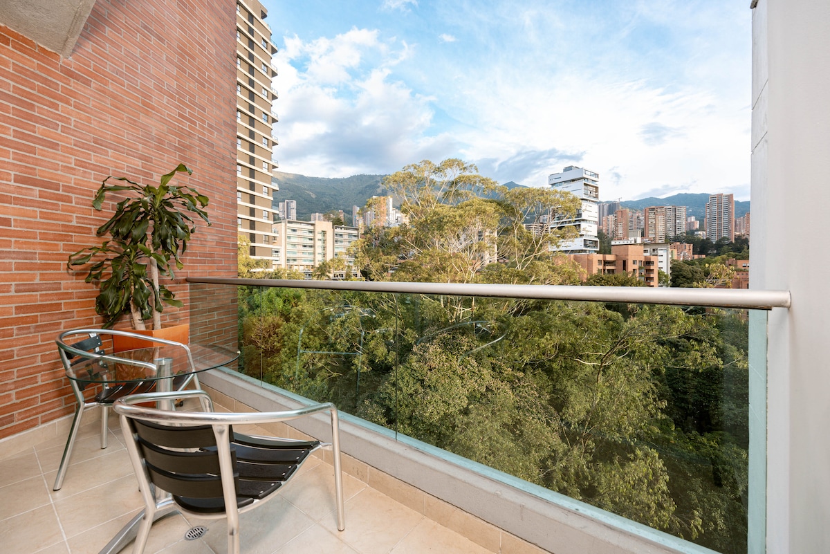 位于埃尔波布拉多(El Poblado)的美丽阳台公寓,配备空调