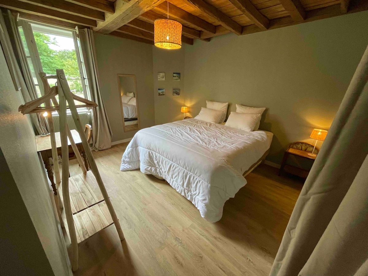 In front of the river Loire and 100 metres far from the center of Meung sur Loire. This mariner's house has just been restored and classified 4*. You will find a sauna, a canoe and a municipal swimming pool. The track "Loire by bike" is at 200m. The Chambord Castle is at 20 minutes and the one of Blois is at 40 minutes. It will takes one hour to go to the Beauval zoo. The garden is fully enclosed and landscaped. New 2023 : the bedrooms are equiped with air conditionning.