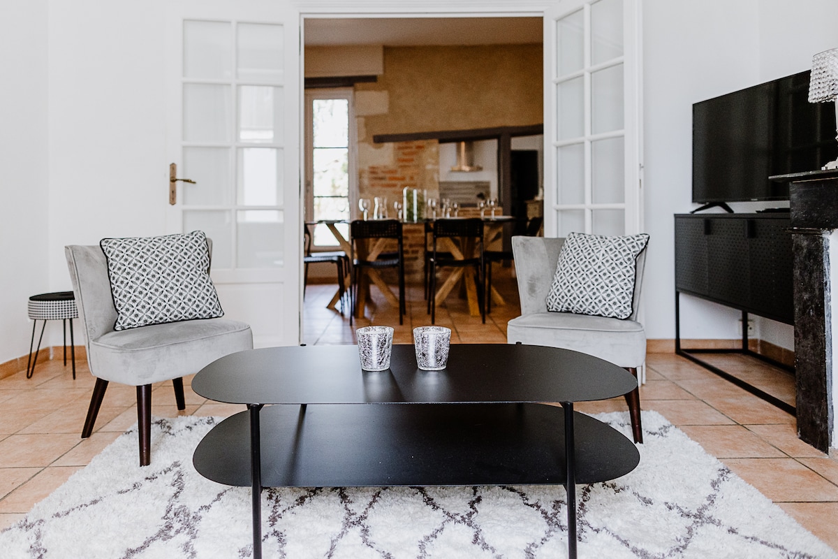 Notre maison Lumineuse & Spacieuse de 200m2 face au loir est équipée haut de gamme, décorée avec goût et entretenue avec soin pour le confort d'un moment unique en mode "Campagne Chic". Elle est pensée pour y vivre de façon conviviale et chaleureuse. Il vous suffit de regarder les photos pour comprendre que vous profiterez d'un lieu confortable & d'exception. Notre Villa exposé Sud sans vis à vis avec piscine à débordement chauffée de Mai à Sept,Surplombe une vue imprenable de la vallée du loir.