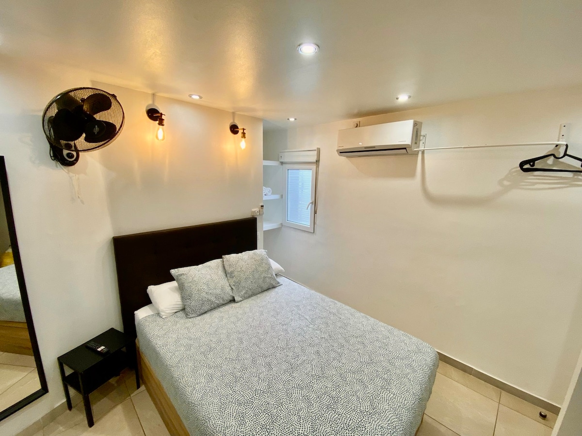 Disfruta de un hermoso estudio recién renovado, perfecto para una estancia tranquila. La cama, ubicada en un acogedor altillo, ofrece un espacio único para descansar. Podrás ver tu película favorita en netflix o amazon prime y guardar tus pertenencias en el armario. Además, contamos con Wi-Fi y un patio ideal para relajarte. Lo mejor: ¡somos pet friendly! Tu compañero peludito también es bienvenido. Ven a descubrir el lugar perfecto para desconectar y disfrutar de una estancia única.