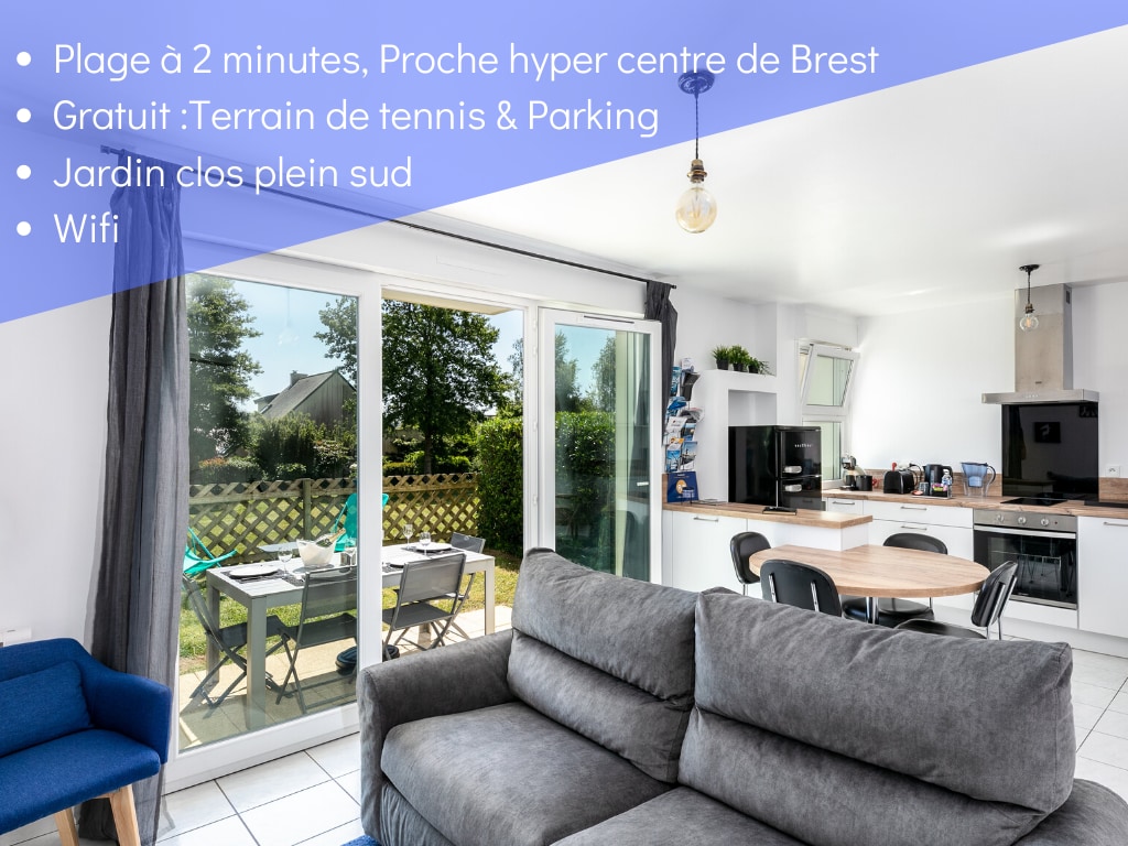 Appartement de 45 m2, situé au rez de chaussée de notre maison avec entrée indépendante, que nous avons pris le temps de rénover pour vous accueillir. Ici, pas de conciergerie, on s'occupe de tout! ;-)) Literie neuve et confortable pour les 2 lits. Vous serez idéalement situé pour visiter Brest et ses alentours, lors de vos déplacements en famille ou vos voyages d'affaire. Nous essayons toujours d'être présents pour vous accueillir, à défaut il est possible d'utiliser la boîte à clés présente.