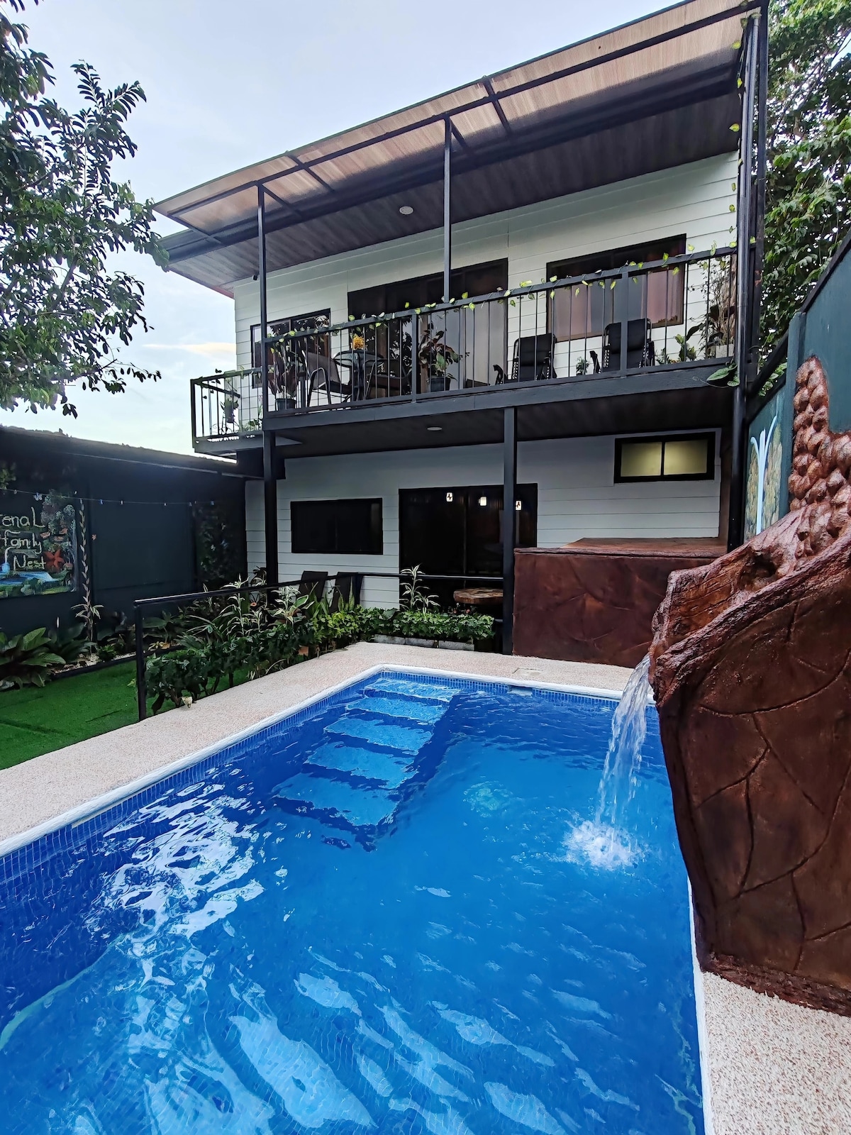 Un hospedaje para escapar de la rutina y conectar con la naturaleza, tiene un diseño moderno con una cálida decoración, rodeado de naturaleza donde podrás observar muchas aves, una linda vista al volcán, balcón, terraza, una refrescante piscina y jacuzzi privado. Un lugar ideal para parejas, amigos o para que puedas teletrabajar tranquilamente. Ubicados estratégicamente cerca de todas las actividades principales y a tan solo 2.5 km del centro de La Fortuna y a 1 km de La catarata La Fortuna.