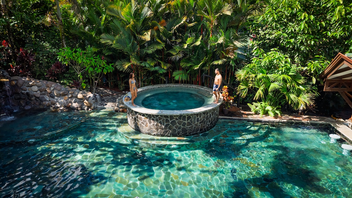 Specially designed to coddle our Airbnb users by providing them luxurious and functional spaces and a touch of immersion in nature that will fill that need for peace and relaxation. Strategically located just 5 minutes away from downtown La Fortuna, this apartment has an indoor private plunge pool/jacuzzi, beautiful views of the Arenal Volcano from its balcony and kitchen, A/C in the room, as well as a bathroom with an open shower with glass roof.