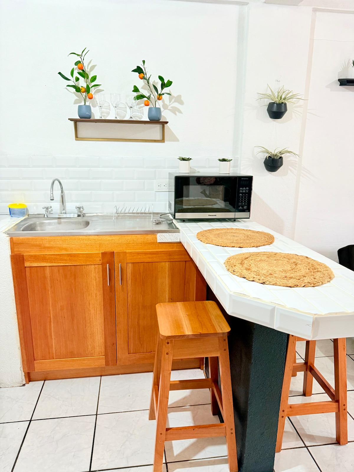 Apartamento en un primer nivel (Planta Baja). Espacio acogedor y funcional. Luego de un día lleno de aventuras en Monteverde ,necesitarás un lugar para descansar tranquilo. Tome un delicioso baño en nuestro Jacuzzi, solo o en pareja estamos seguros de que lo disfrutará. Sábanas 100%algodón. Shampoo, acondicionador, gel de ducha ( con Aromaterapia). Plancha y secadora de cabello. Área de lavandería completa dentro del apartamento.