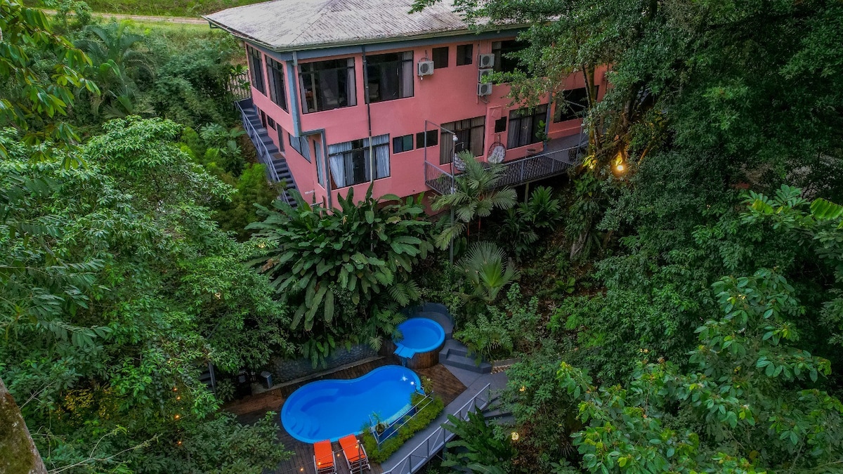Disfruta de una Villa totalmente equipada rodeada de naturaleza con una de las mejores vistas al Volcán Arenal. Una amplia terraza donde podrás relajarte en un jacuzzi al iré libre mientras disfrutas del sonido del río y de la exuberante biodiversidad. Aventúrate en nuestros senderos con llegada al río privado dentro de la propiedad con un jardín que rodea toda la casa. Ubicada a 5 minutos del centro de la ciudad, termales de aguas calientes y a 2 minutos de la catarata de la Fortuna.