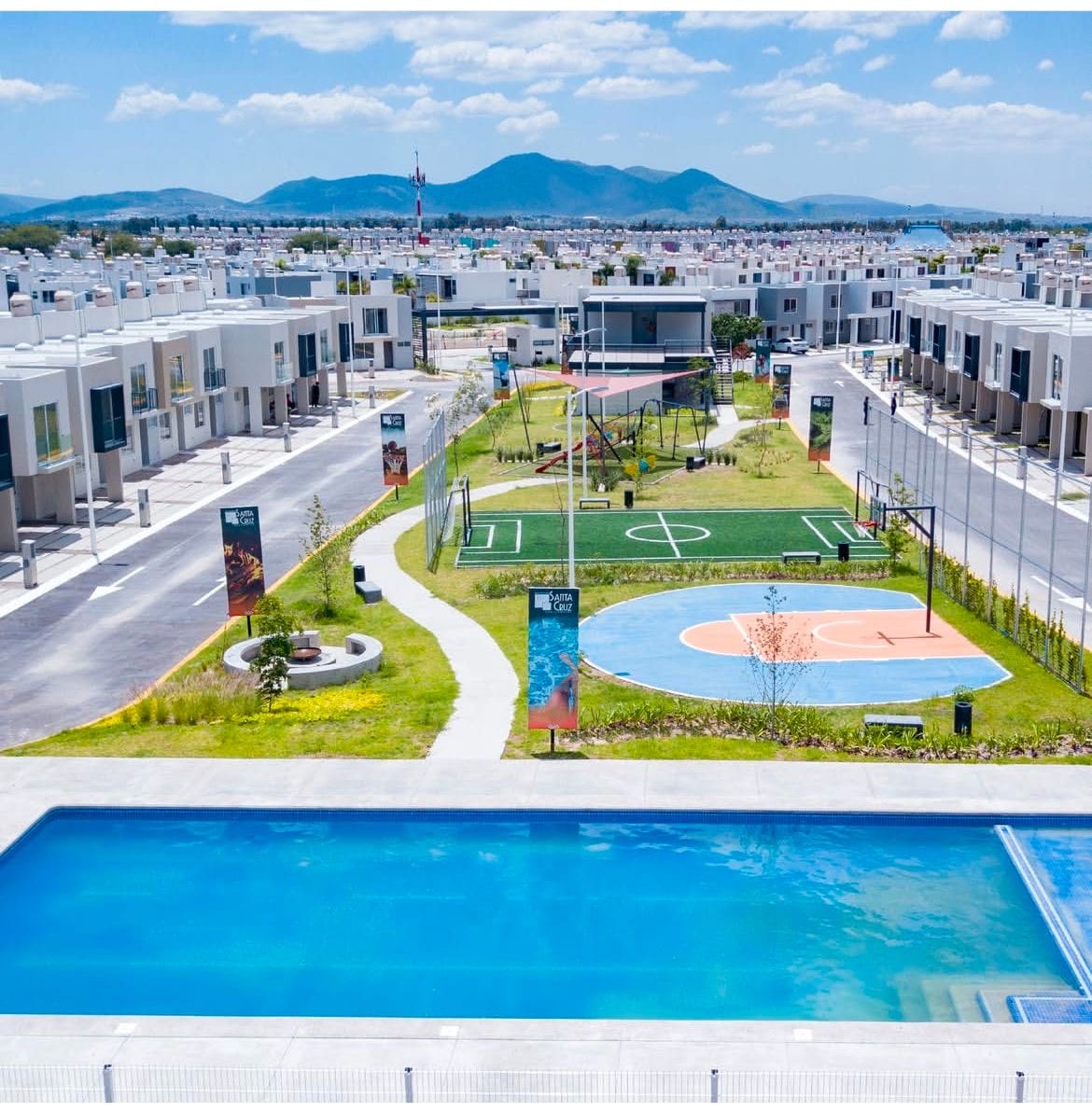 ✨ Casa Santa María ✨ Disfruta de una estancia cómoda en esta casa nueva y totalmente equipada con muebles nuevos, ubicada en un coto privado con seguridad 24/7 y justo frente a las amenidades: alberca semi olímpica, áreas verdes, área de fogata y juegos infantiles. La propiedad cuenta con 3 habitaciones amplias, perfecta para descansar, trabajar o convivir en familia. Estamos a solo minutos del aeropuerto, donde podrás observar y escuchar los aviones. ⚠️ No cuenta con aire acondicionado.