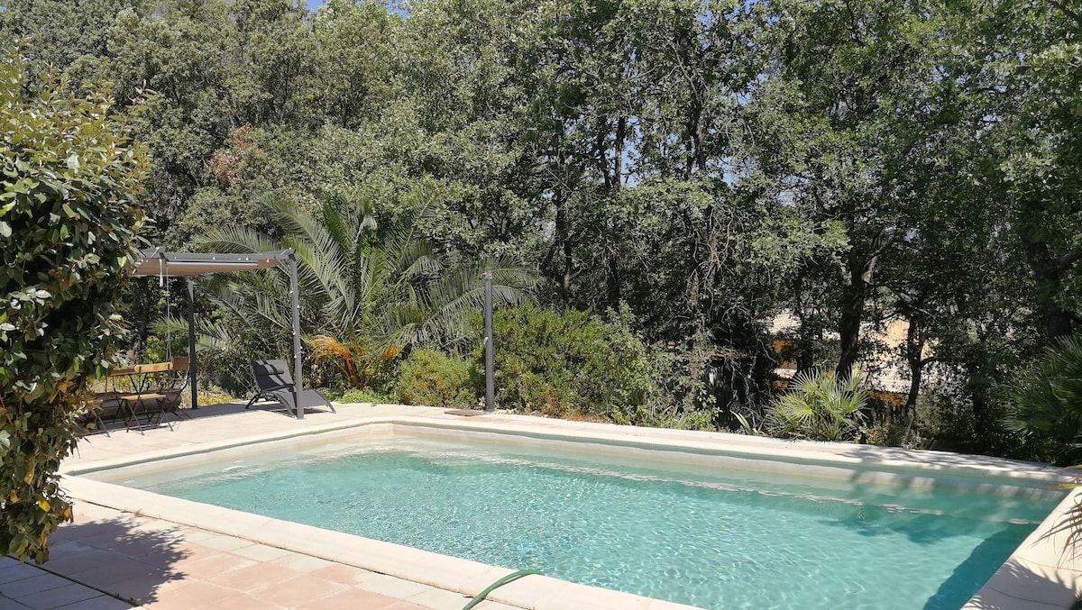 Bonjour, le décor élégant de cet hébergement de charme vous séduira. Le Mas est situé sur une colline au coeur des vignes. Sur un terrain de 5000m2 vous profiterez de la piscine, du terrain de boule et divers espaces de détente (à partager avec d'autres hôtes). A 15 min de la mer et du Castellet, venez vous ressourcer au calme à l'ombre des pins et des oliviers. Possibilité de se promener dans les vignes ou la colline à 2 pas du logement.
