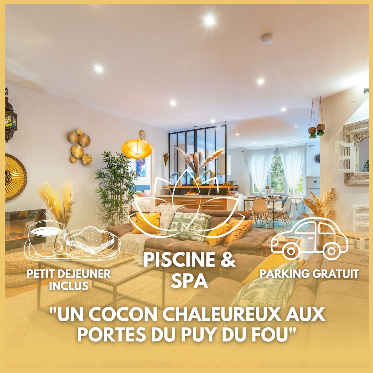 Découvrez notre Love Room El Tigre, une harmonie parfaite entre un refuge romantique et un havre de bien-être. Avec des équipements pour éveiller vos sens. Notre chambre offre également le luxe d'un SPA privé et l'exclusivité d'un CINÉMA ROOM. Un Lit king size Laissez-vous transporter par une expérience inoubliable. Pour la première nuit vous avez une bouteille de vin blanc et un petit déjeuner OFFERTS . Réservez maintenant Le Love Room en Vendéela