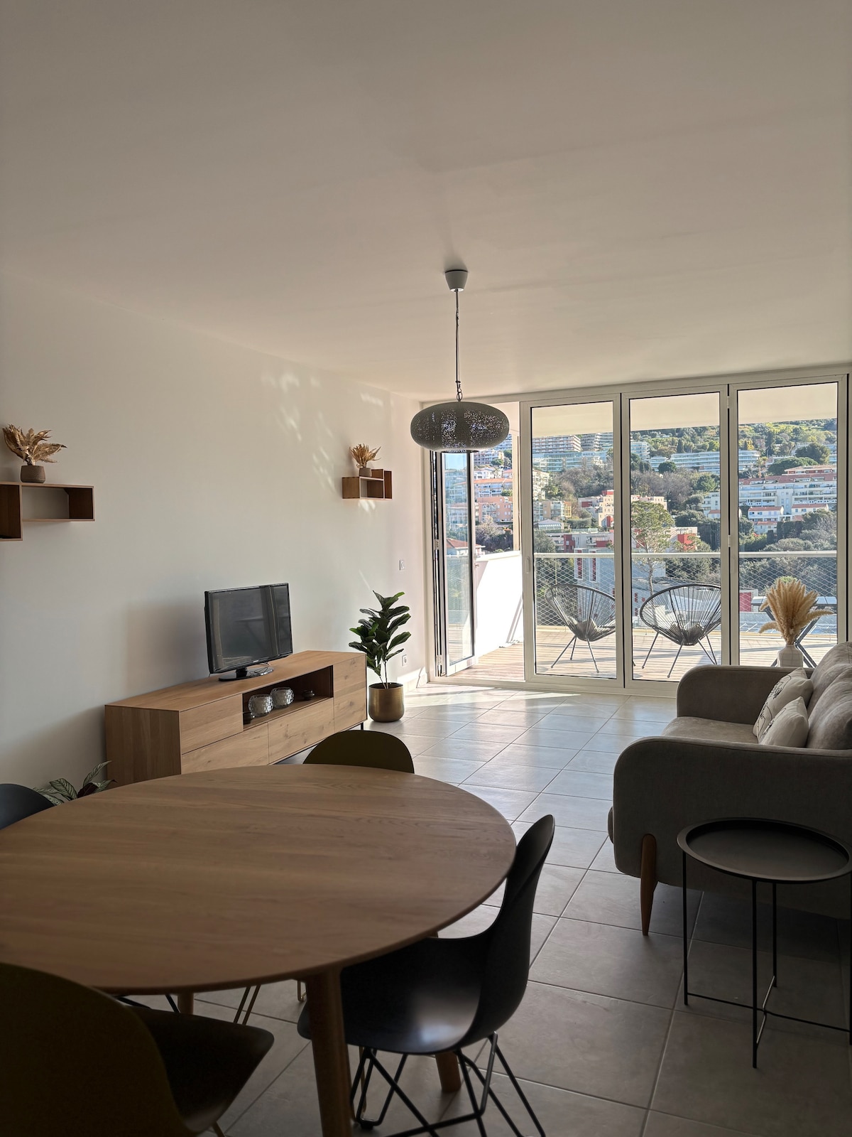 Idéalement situé avec une vue panoramique, vous profitez d'un lieu calme et reposant pour une escale sur la Côte d’Azur. Appartement entièrement refait à neuf et façonné avec des matériaux de qualité pour vous offrir un séjour INOUBLIABLE dans notre région. Que vous soyez une famille en vacance, voyageurs intrépides ou en déplacement d'affaire vous n'aurez aucun mal à vous y sentir comme CHEZ VOUS !