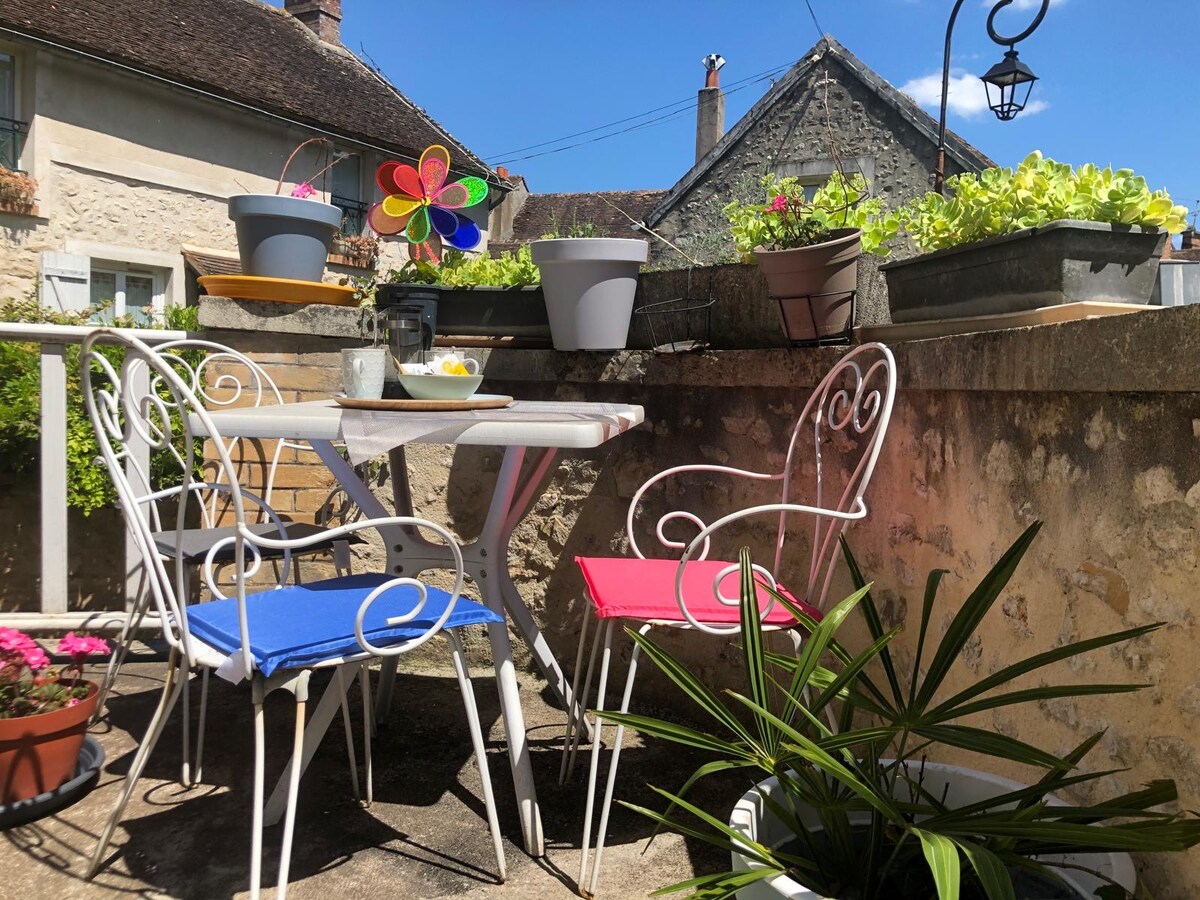 Profitez d'une maison au cœur du centre historique de Moret-sur-Loing, dans une ruelle calme à 50m des rues commerçantes, 100m de l'église Notre Dame et à quelques pas des berges du Loing. Nous vous accueillerons avec plaisir dans notre nid douillet pendant la durée de votre séjour. La maison dispose d'une cuisine équipée et aménagée, d'un espace nuit/salon cosy et salle d'eau/wc Gare de Moret-Veneux à 15mns à pied, 4mns en bus, vous rejoignez le centre de Paris en 45mns.