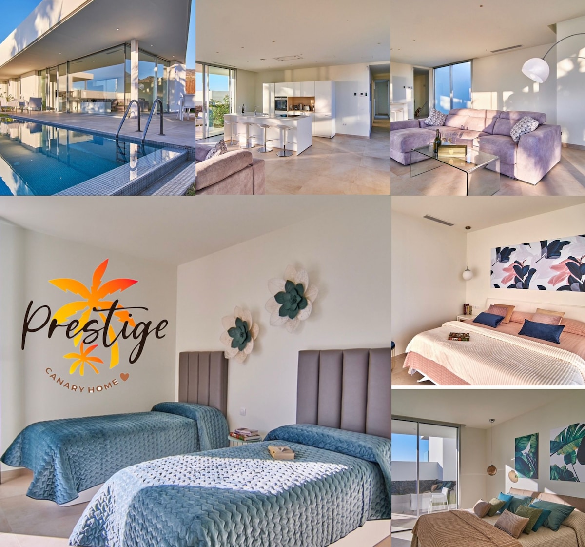 Villa Veiga is a beautiful modern villa for travelers looking for something new and unique. It is located in Costa Adeje in the south of Tenerife in the new development area called Rokabella, close to the coast, offering beautiful views and incredible sunsets. It offers 3 bedrooms with bathrooms, a spacious living room with a fantastic terrace and heated pool, barbecue and outdoor dining area. Our villa is designed with careful attention to every detail using top quality materials.