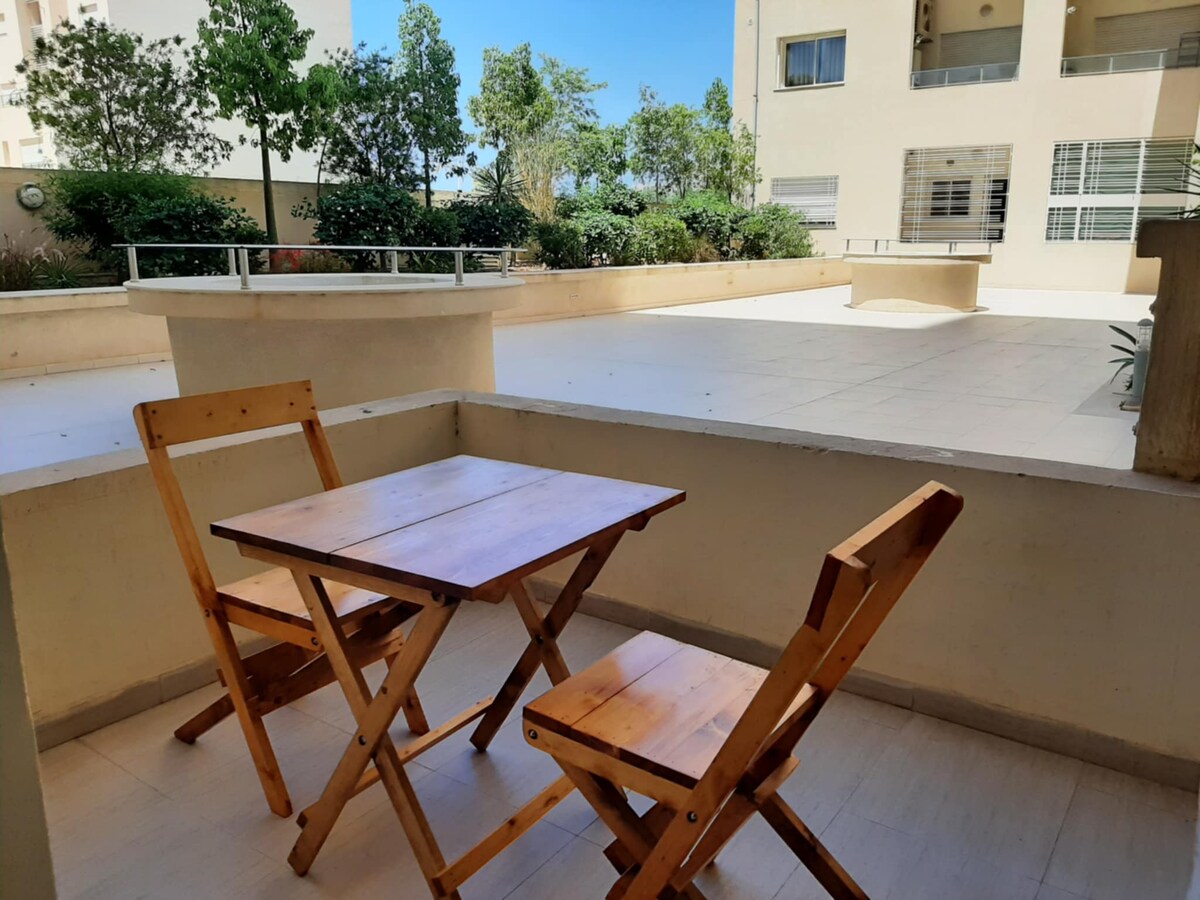 Joli appartement doté d'une grande terrasse privée surplombant le magnifique parc Essada. Au coeur de la marsa et proche de toutes commodités (un pressing juste en face ) , le logement est à 7 minutes à pieds de la station de train La Marsa, du centre commercial Zéphyr et de la plage, à 15 minutes de sidi bou said et à 20 minutes en taxi de l'aéroport. C'est un logement indépendant au 2 eme étage , S+1 bien équipé : - cuisine avec plaque, micro ondes et cafetière - connexion wifi - télévision