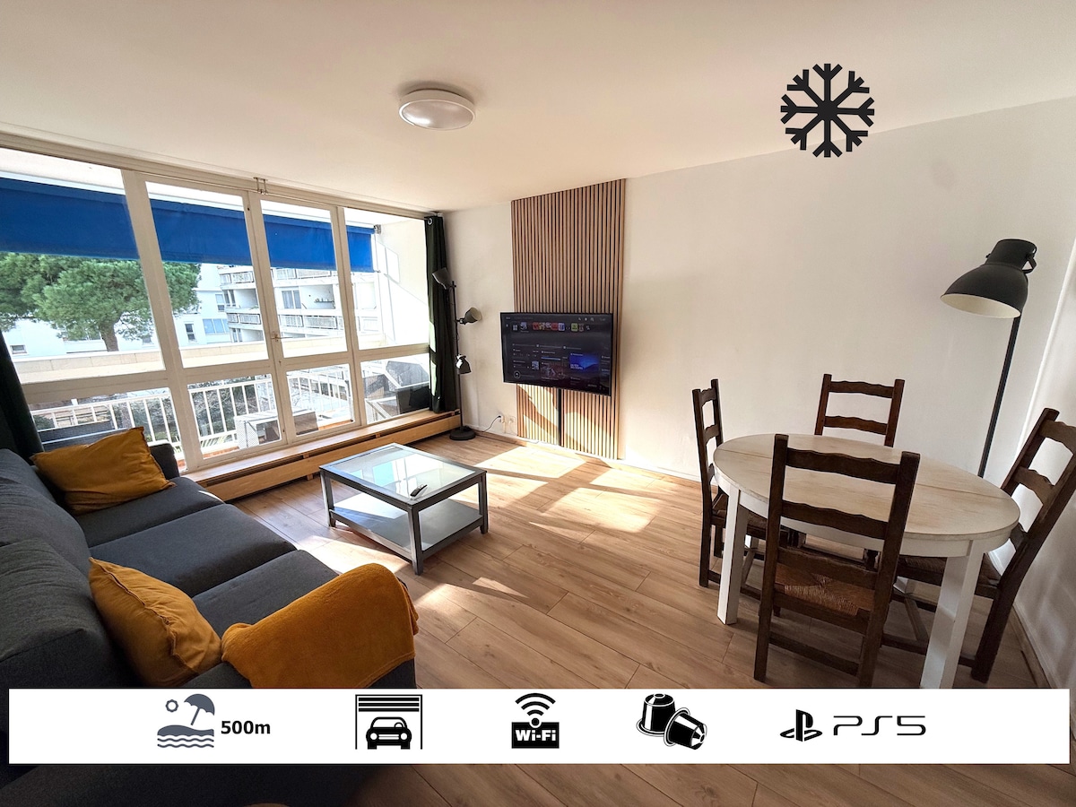 宽敞的2件套房,海滩中心,车库,空调,PS5